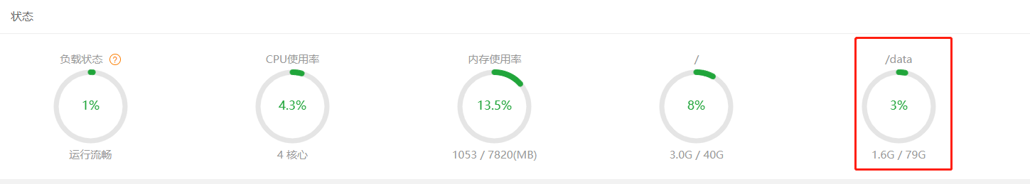 看到这个就大功告成了,可以去宝塔里面看一下我们的数据盘data出来了