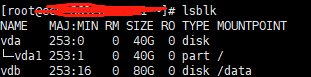 查看系统检测的硬盘 命令:lsblk